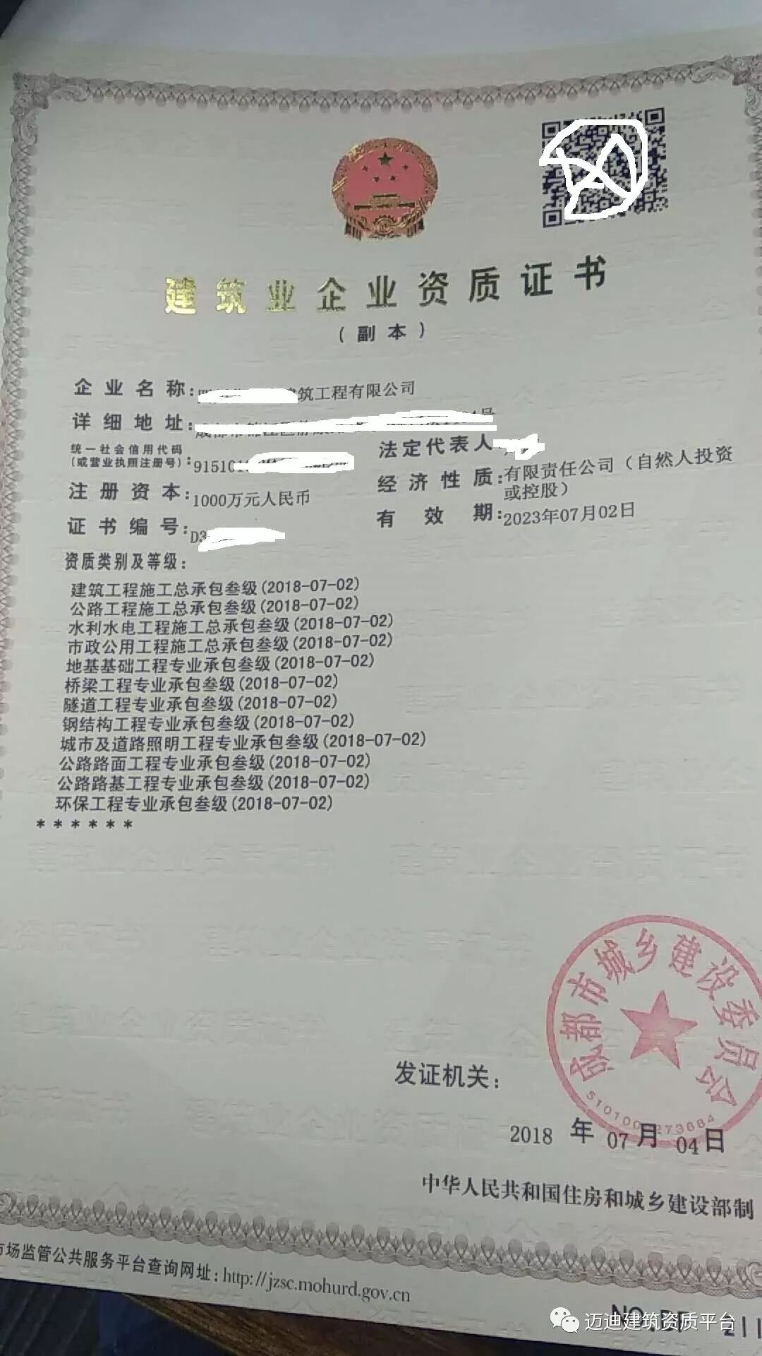 迈迪建筑资质平台微信公众号提供建筑公司股权转让及求购/人才招聘/证书挂靠/资质新办/资质升级/安许新办及延期/最新资讯/政策解读/行业分析/管理知识,以及建筑财税/PPP/建筑工业化/信息化等专题内容